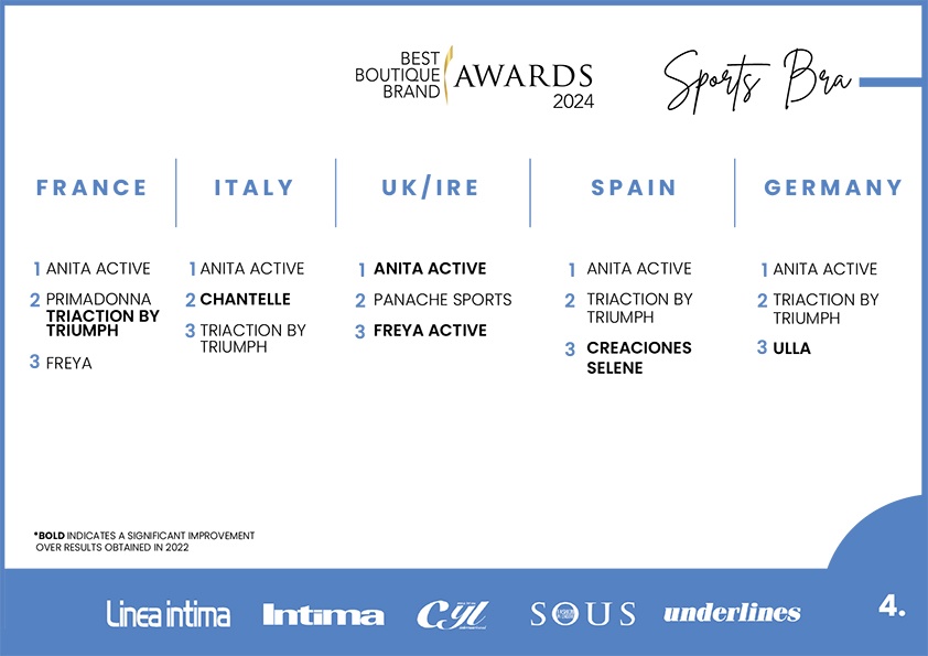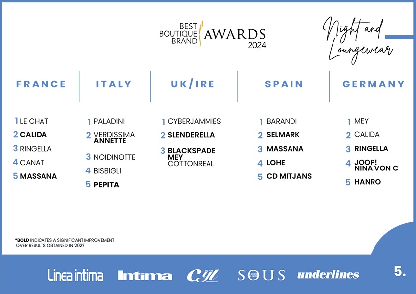 Así, a continuación, desglosamos los rankings por categorías de producto de moda íntima con las marcas que mejor rendimiento obtuvieron el pasado año en cada uno de estos países: