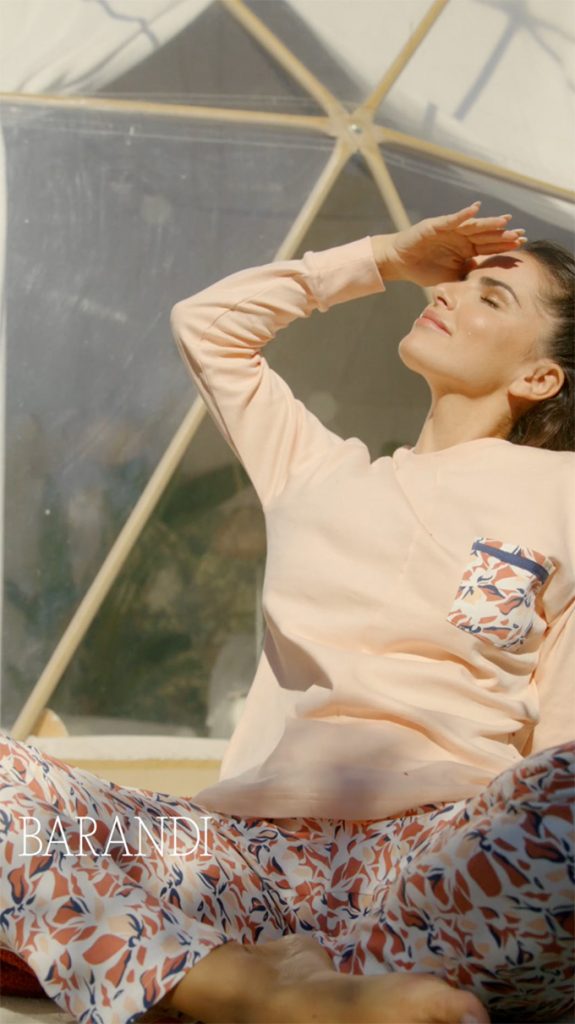 En otra versión de color, pero igual de calentita y gustosa, Barandi también propone completar tu outift lounge con una chaqueta de vigoré y capucha a conjunto con un pijama de corte chandalero en algodón y colores otoñales con pantalón y bolsillo contrastados en un optimista estampado.