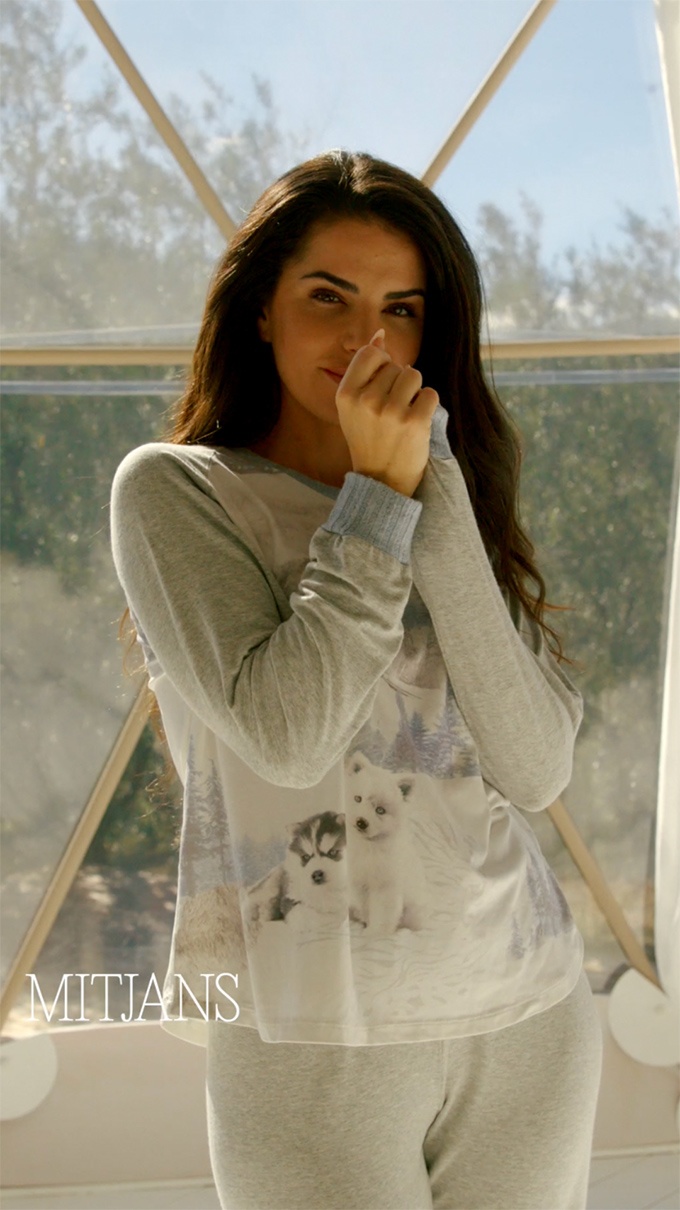 Igual de perfecto que las propuestas nightwear de Mitjans, una firma que no negocia en cuanto a calidad y confort se refiere. De su colección OIO23 la influencer se decantó por un conjunto pijamero de tres piezas formado por camiseta de tirantes con puntilla de encaje, un pantalón versátil y una liviana chaqueta a juego, todo ello en un tejido gris suave, cálido y muy elegante. En versión más funcional y cómoda, pero esta más calentita de cara al invierno, el pijama con estampado Husky invernal de dos piezas de corte redondo y mangas y pantalón lisos es un básico clásico que nunca falla si la cosa se pone fría gracias a su cálido y agradable tejido. Puedes doblar la apuesta con bata a juego.