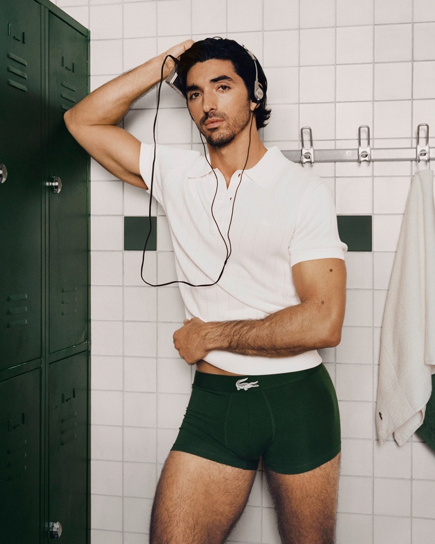 La campaña de imagen, realizada bajo la dirección del fotógrafo Angelo Penetta, el director Simon Cahn y el estilista Jason Bolden, muestra a un desenfadado Taylor Zhakar Perez en el vestuario de un gimnasio parisino, con fotografías honestas y precisas, creando una imagen que combina estética, humor y siluetas definidas que mezclan moda, herencia y creatividad. Tradicionalmente asociada a figuras del tenis como Novak Djokovic, Lacoste apuesta ahora además por rostros vinculados al séptimo arte como Pierre Niney o Adèle Exarchopouolos, perfiles que amplían su abanico de referentes y que conecta con nuevos públicos y que encarnan su visión contemporánea de la ropa interior masculina.