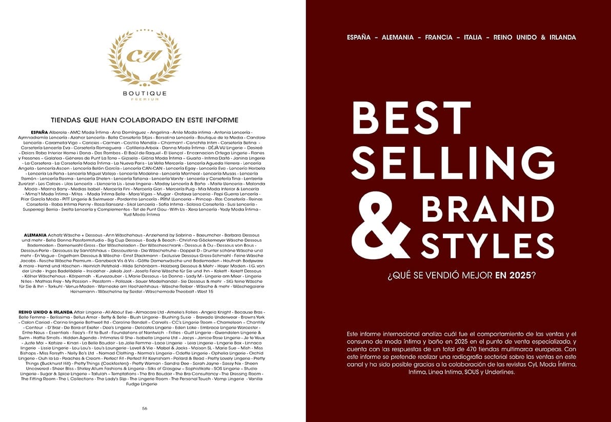 Las colecciones de moda íntima para OI´2026/27 de las principales firmas del mercado, el informe sobre el consumo de moda íntima y baño en Europa, las marcas que más, y mejor han vendido en el punto de venta detallista el pasado año, las tendencias, estilos y prendas que no pueden faltar en tu establecimiento, las claves de esta nueva edición con la que, además, celebramos seis décadas de historia.