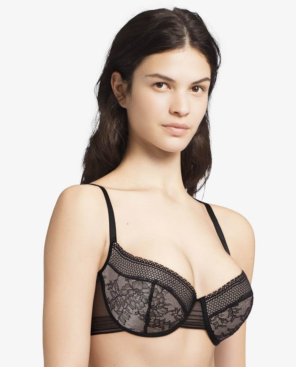 Destacamos su sujetador con aros, disponible hasta la copa F o su modelo de realce push up con mezcla de encaje y tul que ofrece una forma seductora y natural del busto creando un escote irresistible gracias a sus almohadillas extraíbles.